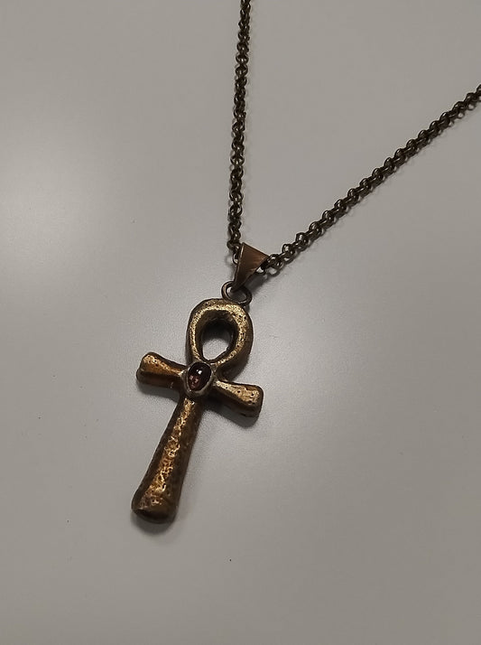 Amulette croix de vie égyptienne Ankh antique avec tourmaline rose LEIA&CO