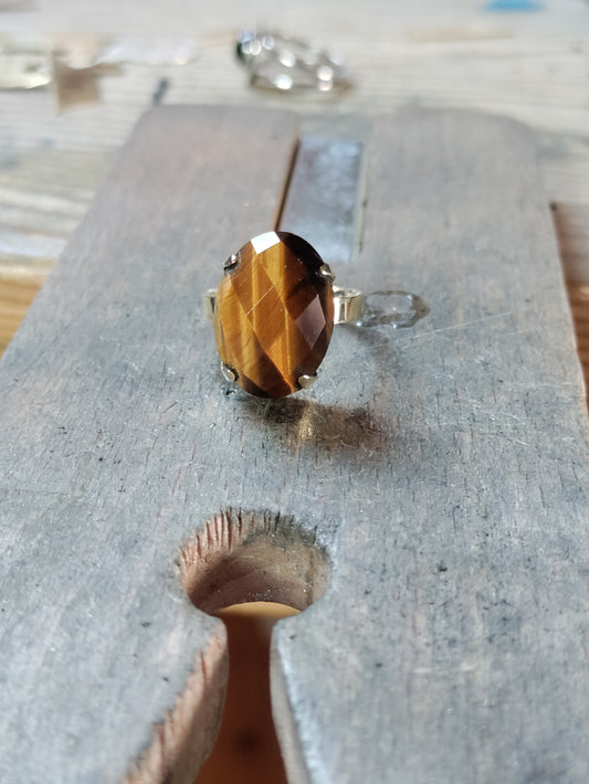 Bague artisanale en laiton doré et oeil de tigre à facettes LEIA&CO taille 53