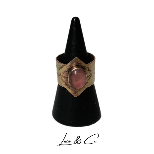 Bague anneau double en laiton avec quartz rose LEIA&CO