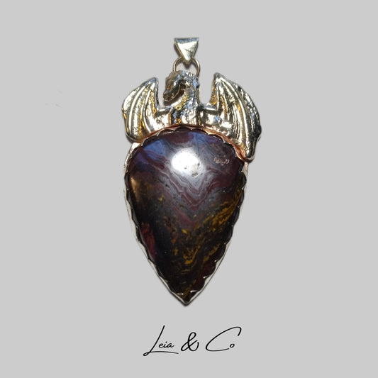 Amulette dragon doré avec pierre tigre de fer LEIA&CO
