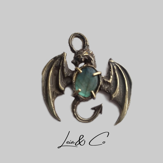 Amulette dragon antique avec Labradorite bleue-verte LEIA&CO