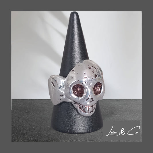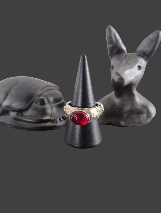 Bague Ankh argentée et pierre rouge LEIA&CO