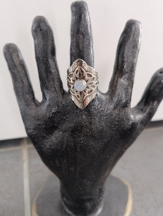 Bague chevalière argentée mandala et pierre de Lune LEIA&CO
