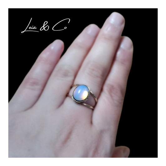Bague anneau double en laiton avec pierre d'opalite LEIA&CO